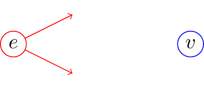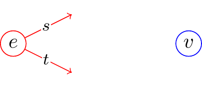 The edge co-operation e has two outputs (s and t), and the vertex co-operation v has zero outputs. Together these two expressions e(s, t) \in \mathcal{X}(\{s, t\}) and v() \in \mathcal{X}(\emptyset) generate a polynomial (i.e. freely generated) \mathbf{Set}-set: