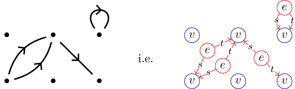 Note that a directed multigraph may be equivalently described as a functor \mathbf{C}-set (a functor \mathbf{C} \to \mathbf{Set}) where \mathbf{C} is the category: